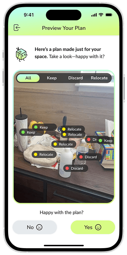 Chat with Sorta’s AI to fine-tune your decluttering journey—tailored exactly to your space, lifestyle, and goals.